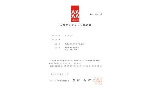 山形県の基準認定を受けた【山形セレクション認定品】です。