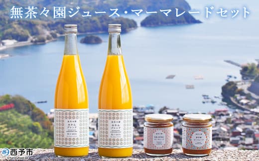 みかんジュース(ブレンド)と無茶々園の定番マーマレード2種類をそれぞれ1本ずつ詰合せました。