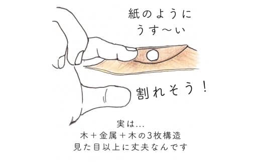 紙のように薄くよくしなるので、本当に木なの?と皆様に驚かれます。