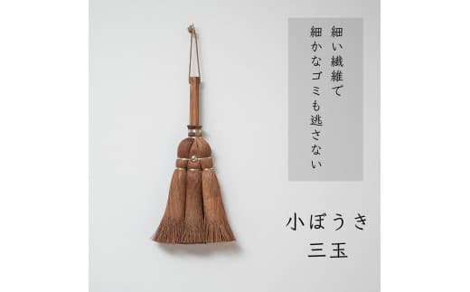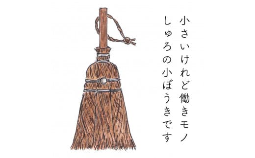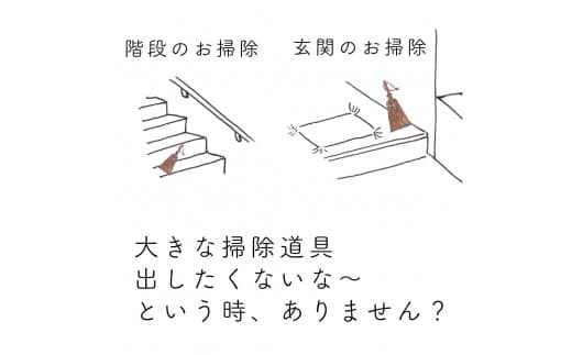 こちらの小さな箒は、いわゆる「荒神箒(こうじんほうき)」といわれるものです。テーブルやキッチン周り、ソファや車のシートのステッチの部分など、細かな場所も得意です。