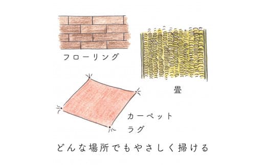 棕櫚の箒はやさしくしなやかな毛先のおかげで、絨毯やカーペットのゴミまで掃きあげることができます。