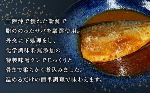 骨まで柔らかく仕上げた化学調味料無添加のさばの味噌煮です。レトルト さば味噌煮 5袋 常温保存 和食 惣菜 鯖の味噌煮 骨まで柔らか 国産 化学調味料無添加 厳選 下処理済 さばフィレ サバフィーレ 調理済み 簡単 おかず 保存料不使用 さば 鯖 魚 青魚 宮城県 石巻市 山徳平塚水産
