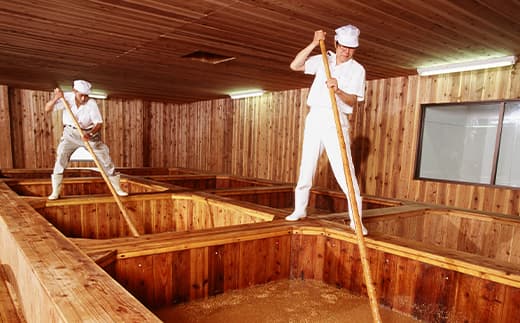 大徳醤油は、今日の醤油造りの主流になりつつある適温醸造(もろみを加温して発酵期間を短縮する方法)を行わず、四季の温度変化に合わせて微生物が活動する伝統的な天然醸造法を守っています。