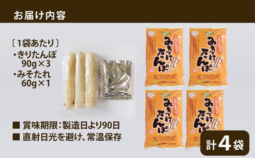 - [きりたんぽ270g(90g×3本)、みそたれ60g]1袋×4袋