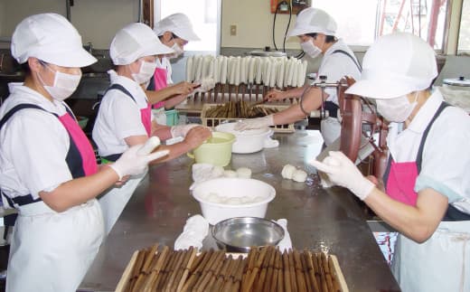 山王食品の「きりたんぽ」は全て手造りです。大館の家庭では昔からお祝いの席やおもてなしの料理として「きりたんぽ鍋」が振る舞われてきました。 今でもご家庭で「きりたんぽ」は自分で作るという方がたくさんいらっしゃいます。「きりたんぽ鍋」は秋田県・大館が誇る自慢の郷土料理です。大切な郷土料理だからこそ本物を味わって頂きたい。 その思いから、創業以来一貫して「手造り」にこだわってきました。