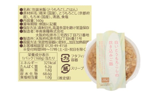 真珠のようなまっしろなとうもろこしパールコーンともち米をブレンドした炊き込みご飯。