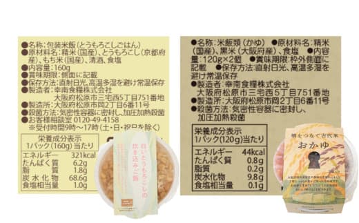 - ・白いとうもろこしの炊き込みご飯:160g×12個