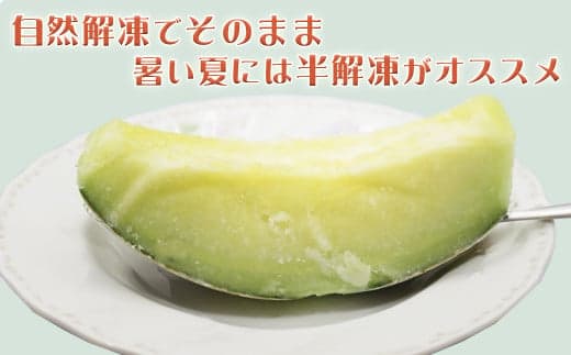 自然解凍で旬のメロンをいつでも手軽にお楽しみいただけます。暑い夏には半解凍でシャーベット状でいただくのもおススメです!