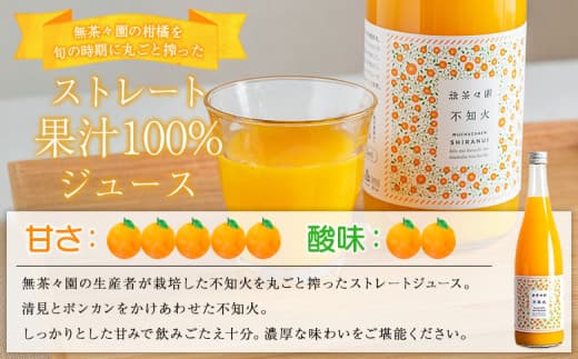<無茶々園の不知火ジュース 720ml×4本> 柑橘 果物 オレンジ フルーツ ストレート 果汁100% 不知火 しらぬい シラヌイ 丸ごと しっかりした甘み 甘味 濃厚 飲みごたえ 飲んで応援 特産品 無茶々園 愛媛県 西予市 【常温】