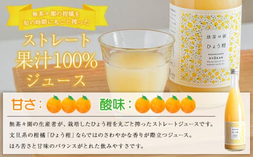 <無茶々園のひょう柑ジュース 720ml×4本> 柑橘 果物 オレンジ フルーツ ストレート 果汁100% ひょう柑 ひょうかん ヒョウカン 丸ごと 文旦系 さわやか 飲みやすい 飲んで応援 特産品 無茶々園 愛媛県 西予市 【常温】
