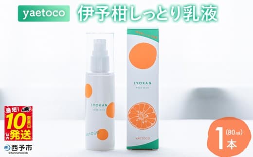 甘くやさしい伊予柑が香る、しっとり潤う伸びのよい乳液。<yaetoco 伊予柑しっとり乳液 80ml 1本>乳液 化粧品 国産 オーガニック 天然精油 国産素材 天然素材 スキンケア デイリーケア コスメ しっとり 潤い 保湿 柑橘 特産品 ヤエトコ 無茶々園 愛媛県 西予市 アロマ【常温】『最短10営業日以内に順次発送予定』